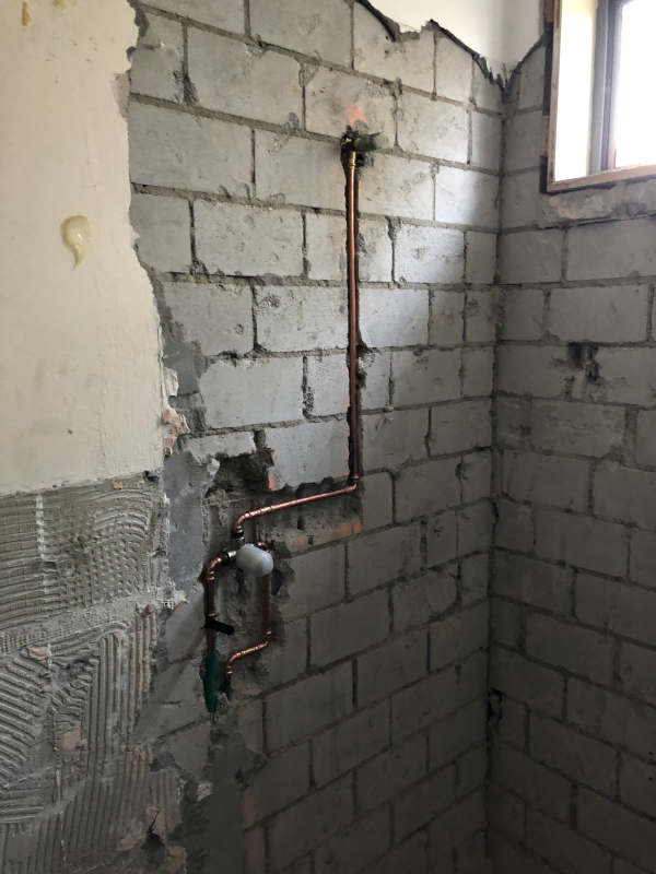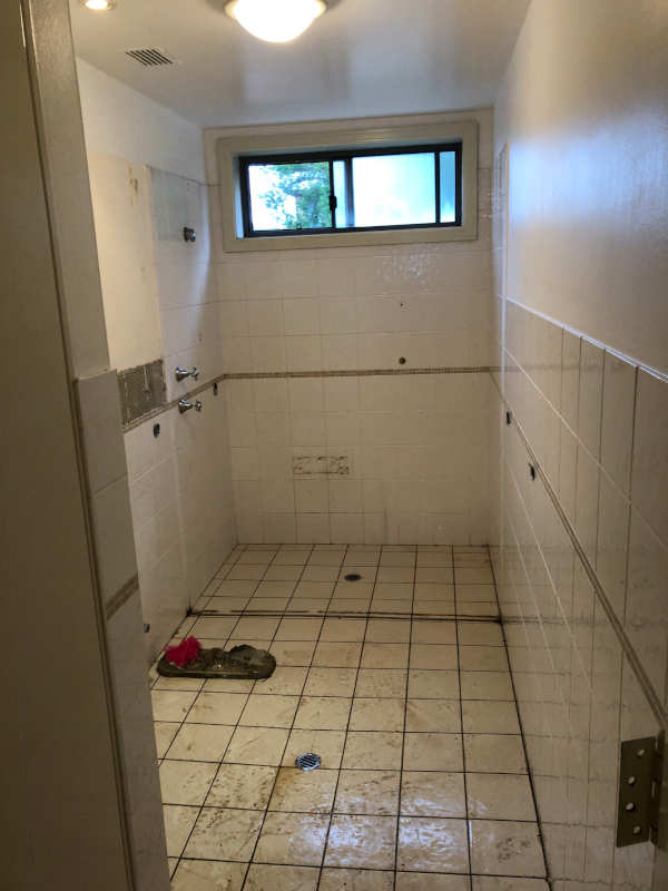 Demolishing old bathroom.