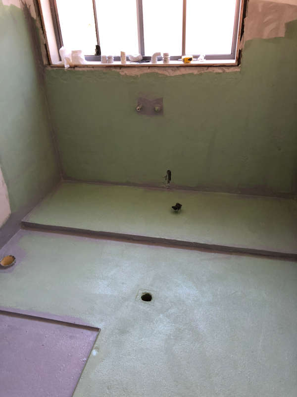 Starting on the second coat of waterproofing, always good to do it in another colour so you don't miss a spot.